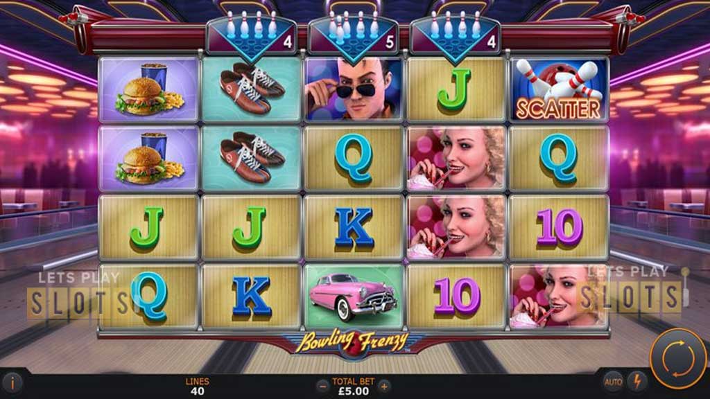 Above the middle three reels you’ll see some bowling pins. There are 10 spots above each reel and you’ll fill them up with bowling pins by landing Scatters on the respective reel, and each Scatter will add one, two or three bowling pins. When you collect all 10, you trigger the feature.