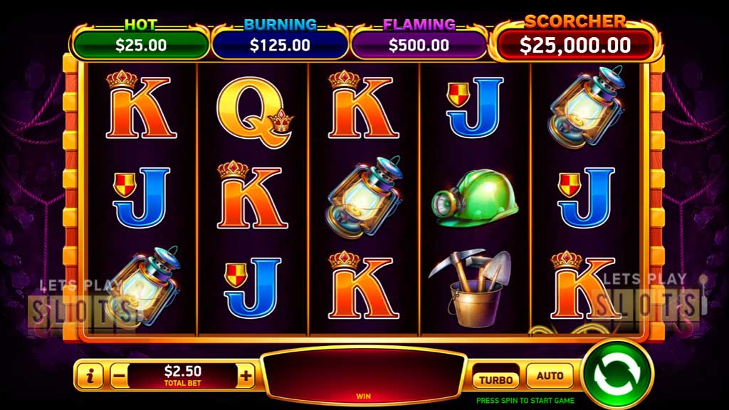 Six or more Firecatcher symbols, which appear on your reels with respective cash prize values shown on them, trigger the Firecatcher Feature. The prizes can be from 1x to 200x your bet on each symbol. When the feature is triggered, the triggering symbols are held while the others re-spin 3 times. If you land at least another Firecatcher symbol, that symbol is held and the re-spin count is reset to 3. Feature ends when you don’t land a new Firecatcher symbol, and if you land all 15 then you’ll win the non-progressive Scorcher Jackpot of 10,000x your bet. If you don’t win a jackpot, you win the sum of cash values on Firecatcher symbols that you landed. The entire Firecatcher Feature is played on a separate board where all the other symbols are greyed out.