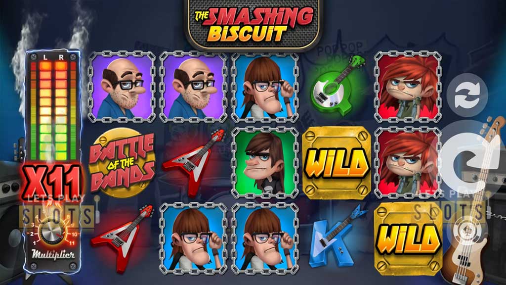 The game is very modern, with excellent graphics that are better than most non-gambling games. The main characters are the three members of The Smashing Biscuit band, and they want to win the battle of the bands, and you’ll help them. The slot game is played on a 5×3 board with 20 fixed paylines, and you pay from €0.20 to €100 per spin.