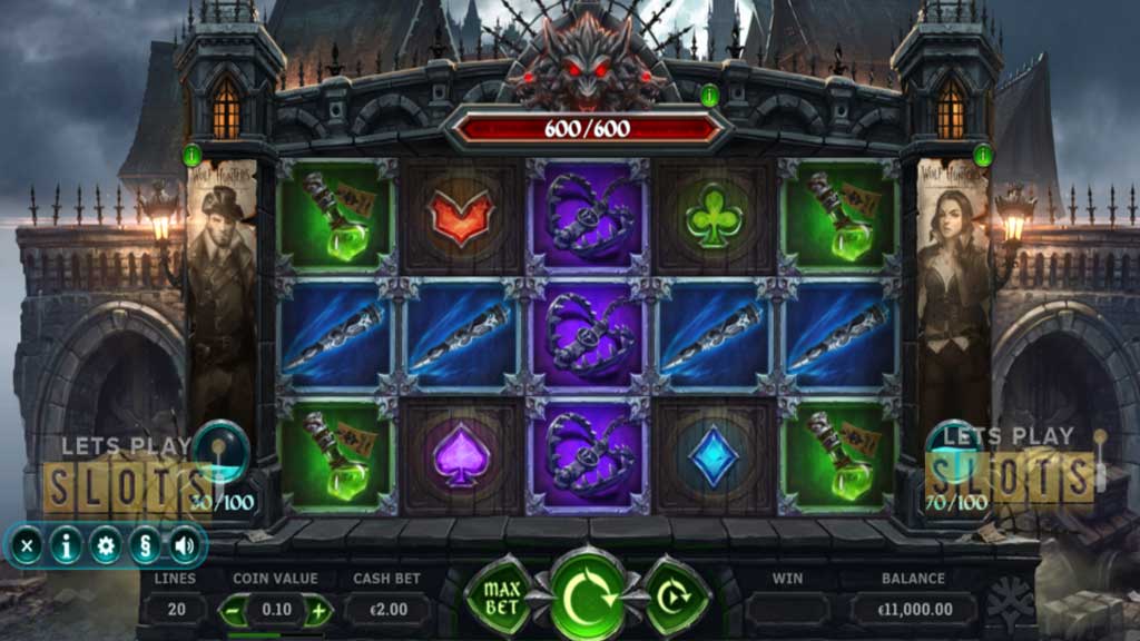 The ultimate goal of this progressive game is to reduce the Werewolf’s health from 600 to 0, which will then award 10 Slayer Free Spins. During this feature, all Werewolf symbols that land will be automatically transformed into Wilds, and then expand to fill their entire reel. This is, of course, quite rewarding and is worth the wait. A good thing is that you know exactly how far you are from triggering the feature, so you can plan the end of your playing session accordingly.